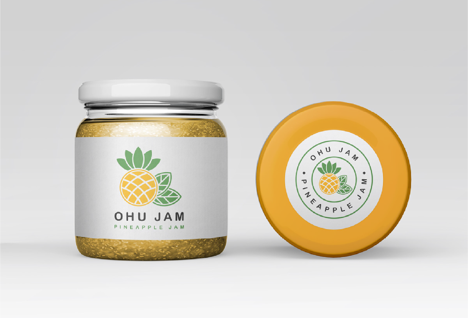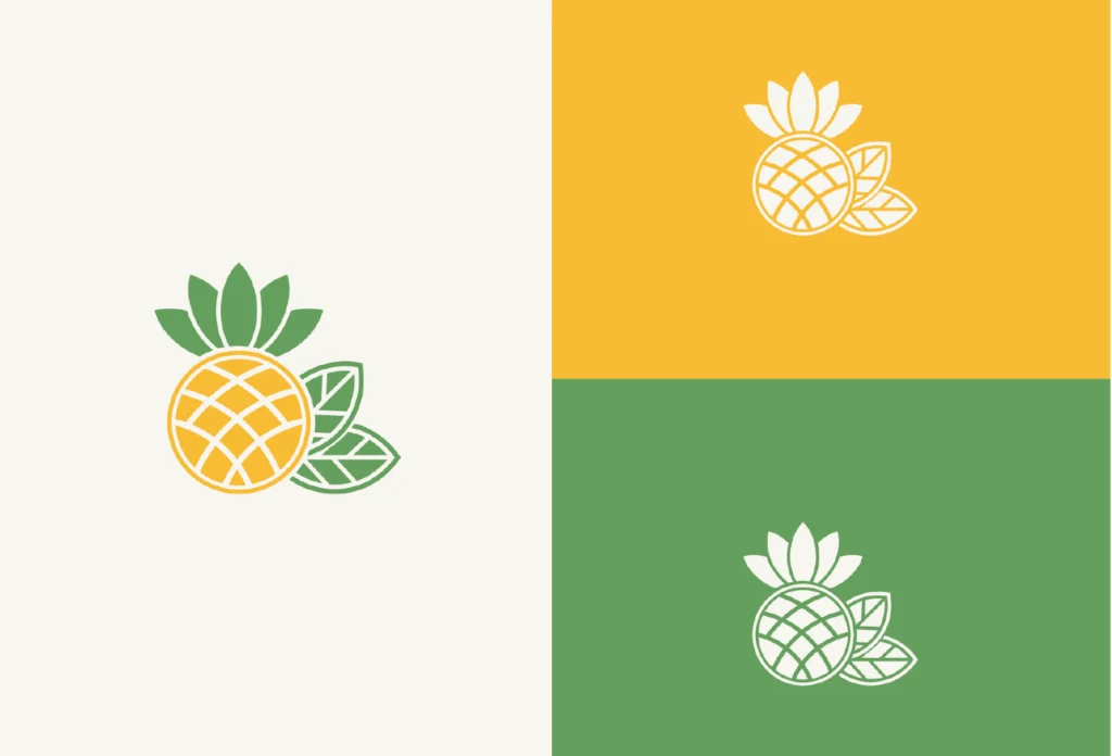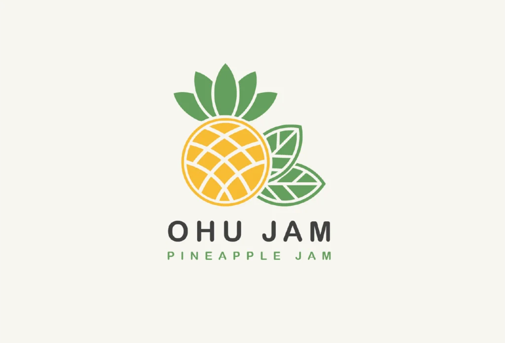 Logo design for purely organic pineapple jam. The logo uses clean geometric pineapple along side organic leaves. Uses bright Orange and green color to portray freshness and pure.