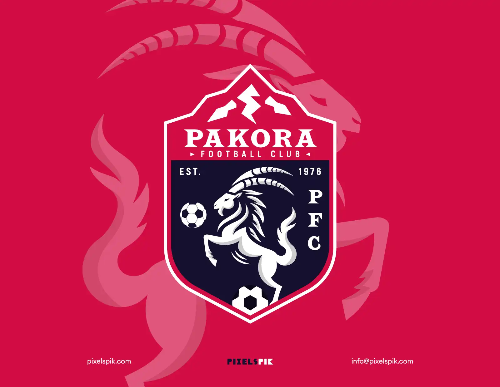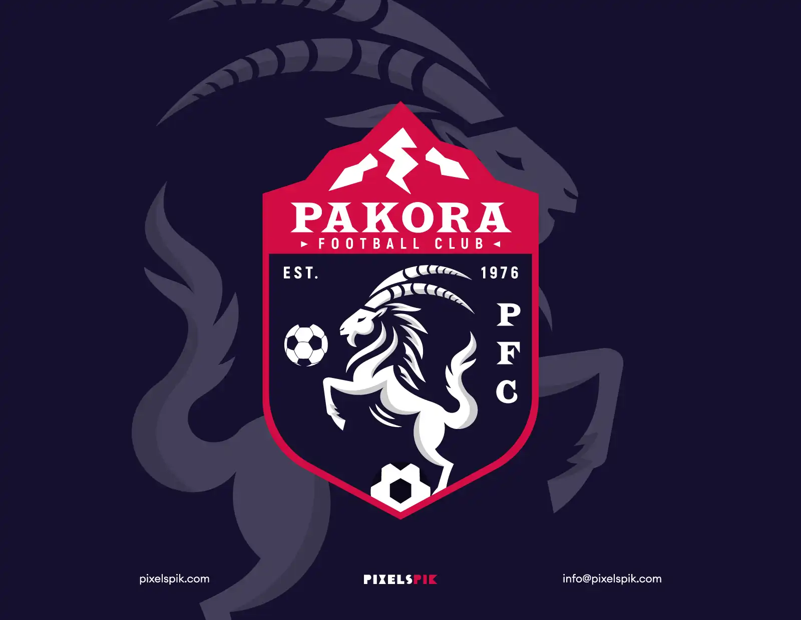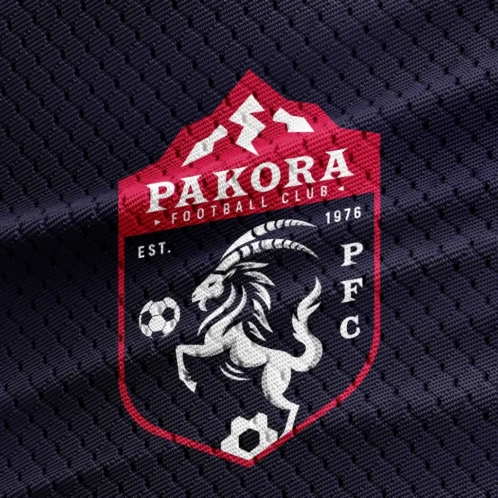 This is a logo design for Pakora Football Club (PFC), a club located in the mountainous region of Gilgit-Baltistan. The logo features a shield design with bold and dynamic elements that represent the region’s unique identity and the club’s sporting spirit.